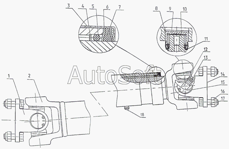Амкодор | Амкодор-8047А (2007) | 53А-2201025-01 | Крестовина в сборе | Муфта карданная |