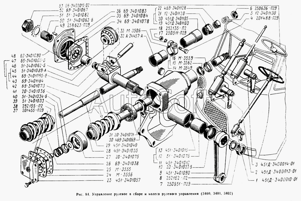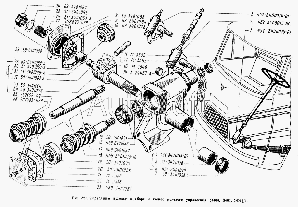 | УАЗ | УАЗ-3151 (1993) | 51-3401062-Б | Ролик вала сошки с подшипником в сборе | Схема расположения подшипников |