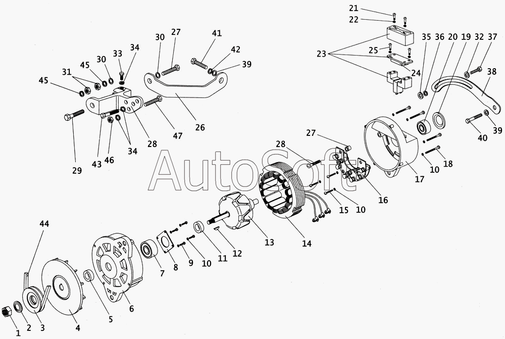 | МТЗ | МТЗ-1005 (2008) | 240-3701056-В | Кронштейн генератора | Генератор 468.3701000-01 |