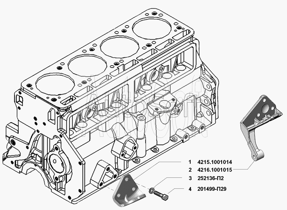 | УМЗ | УМЗ-4213 (Евро 3) (2008) | 4215.1001014 | Кронштейн крепления подушки передней опоры двигателя к блоку | Подвеска двигателя | |
