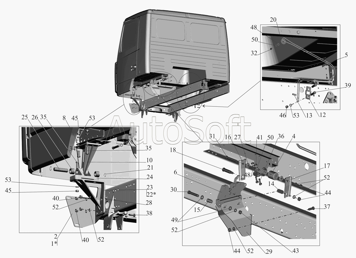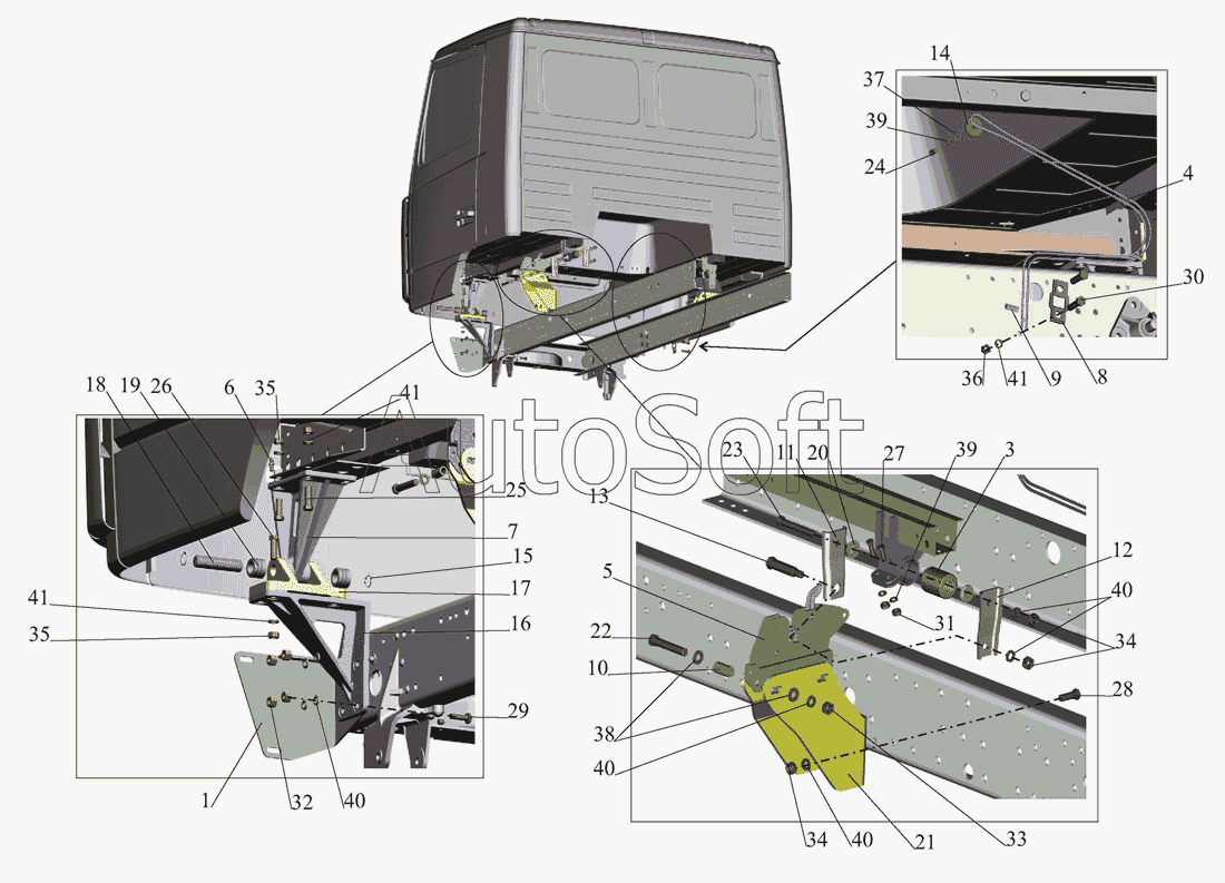 | МАЗ | МАЗ-437130 (Зубренок) (2008) | 437140-2803027 | Кронштейн левый | Крепление кабины к раме 4371-5000004 |