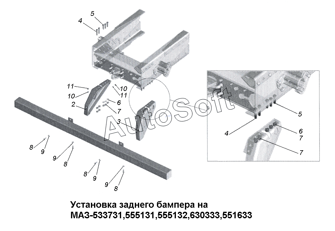 5551-2804025 Кронштейн заднего бампера МАЗ