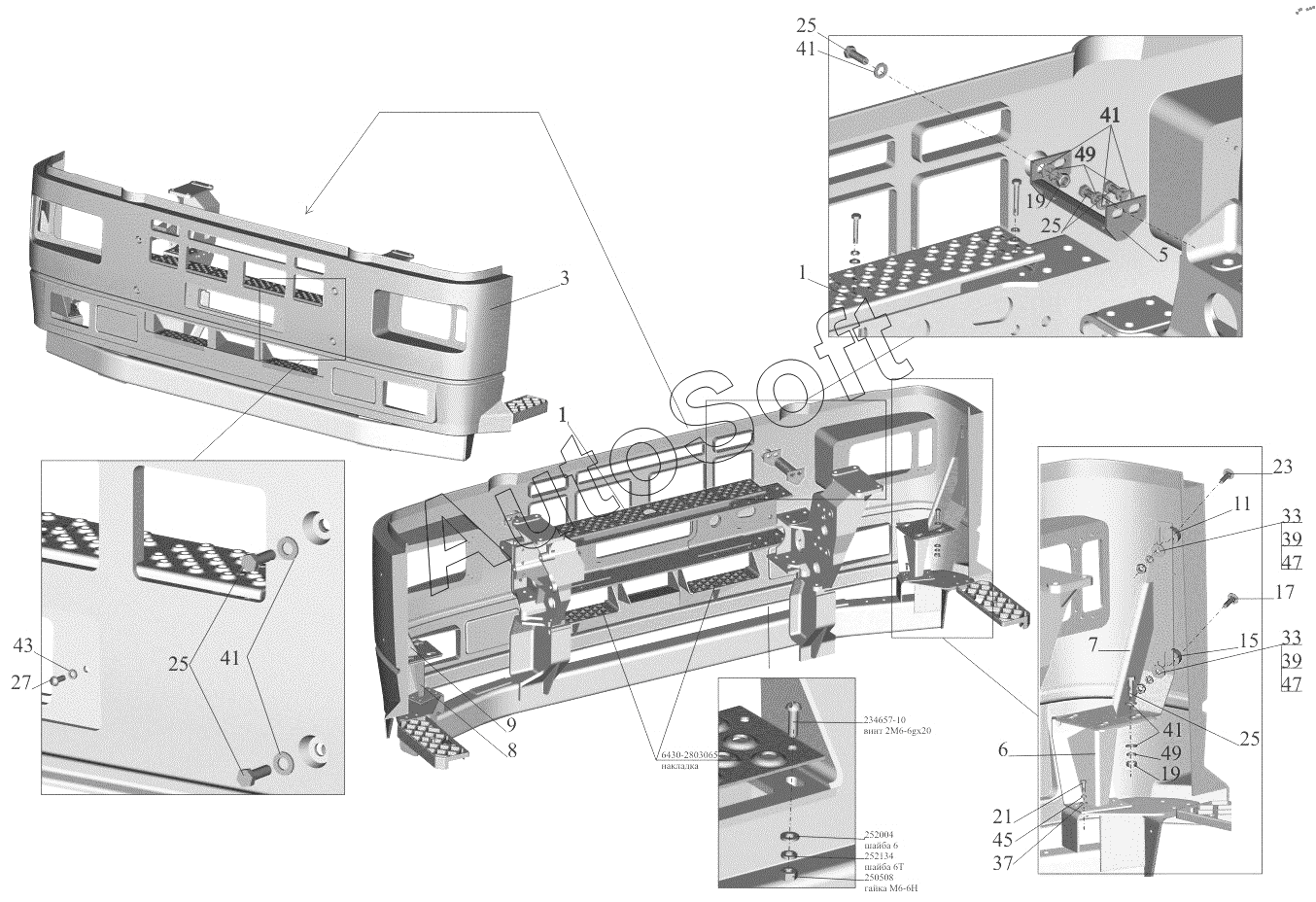 МАЗ | МАЗ-6430A8 (5440A8, 5440A5) (2008) | 6430-2803047-010 | Кронштейн боковой левый | Установка бампера 54421-2803006-012 | |
