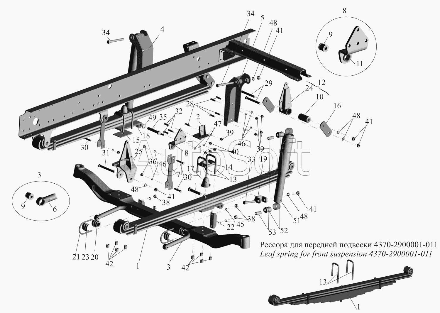 Кронштейн передний левый крепления передней рессоры (крепится к раме 6 крепежных отверстий)