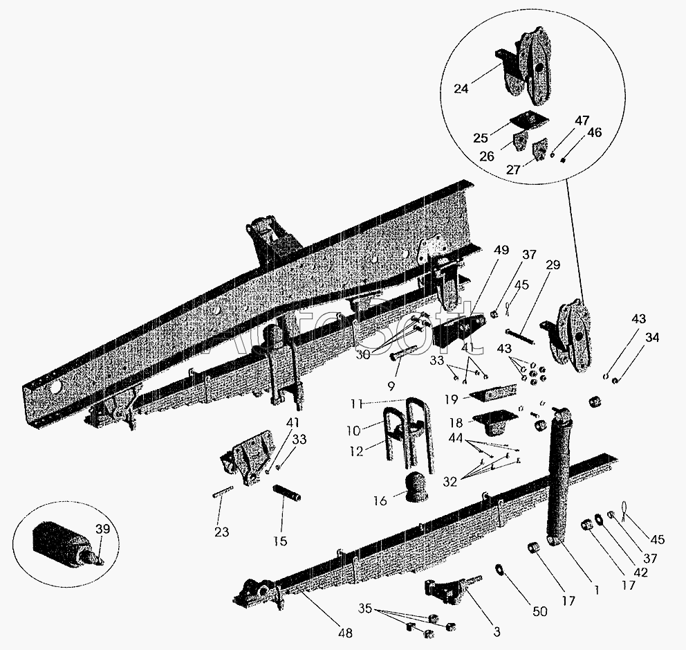 | Стремянка рессоры задней 8378 (L=415мм, гайка М27) с гайками | |