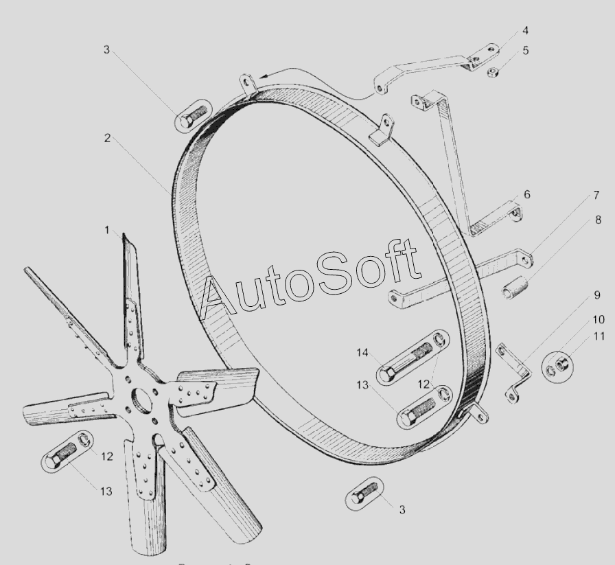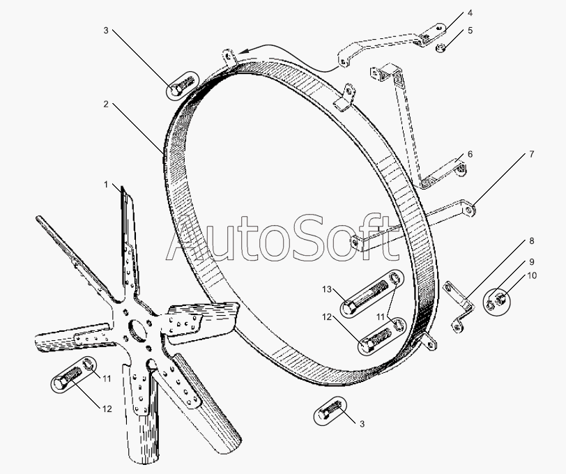 ЯМЗ | ЯМЗ-238НД3, НД4, НД5 (2002) | 238БЕ-1308012 | Крыльчатка вентилятора в сборе | Вентилятор и привод вентилятора двигателя ЯМЗ-238НД5 |