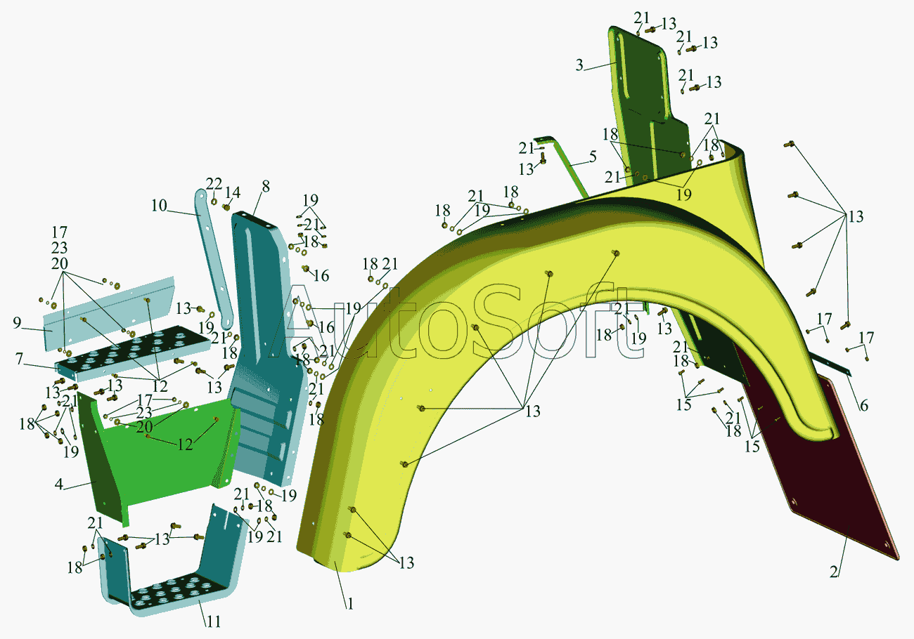 МАЗ | МАЗ-642505, 642508 (2006) | 63172-8403020 | Крыло правое | Установка оперения |