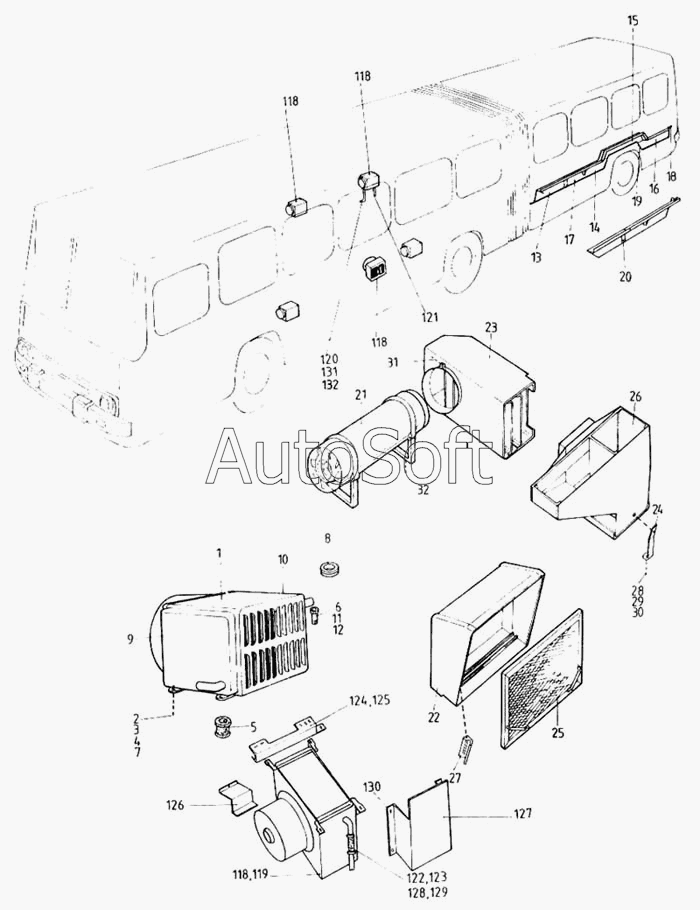 Ikarus | 260.50 | 630.82-7435-010 | Горн продува, поворотный, верхний, в частичном сборе | Отопительное устройство и вентиляция | |