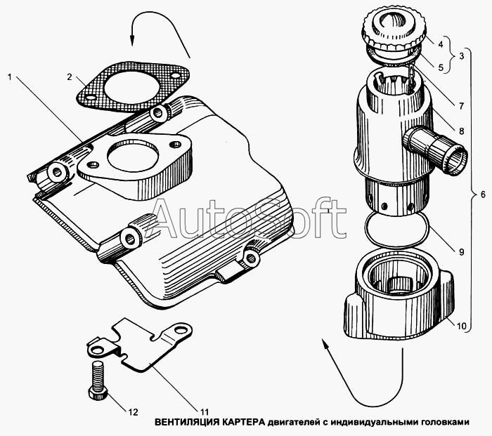 | ЯМЗ | ЯМЗ-236 НЕ, 236 БЕ, 7601.10 (2003) | 201-1114060-А | Крышка головки маслозаливного патрубка в сборе | Вентиляция картера двигателей с индивидуальными головками |