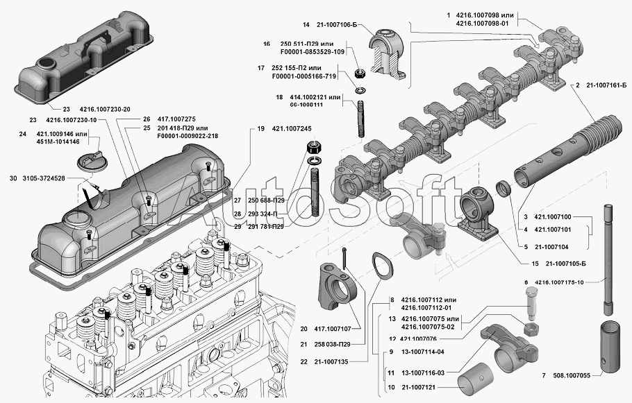 УМЗ | УМЗ-42164 (Евро 4) (2013) | 4216.1007230-10 | Крышка коромысел в сборе | Штанги, толкатели и крышка коромысел |
