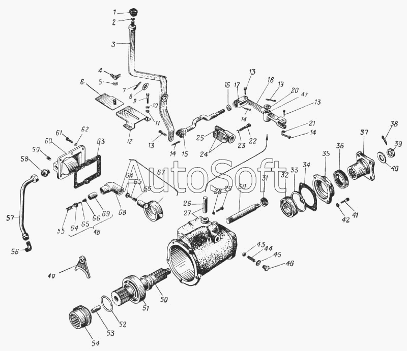 УралАЗ | УРАЛ-375 | 375-4202020 | Муфта включения коробки | Коробка дополнительного отбора мощности (Рис. 124) |