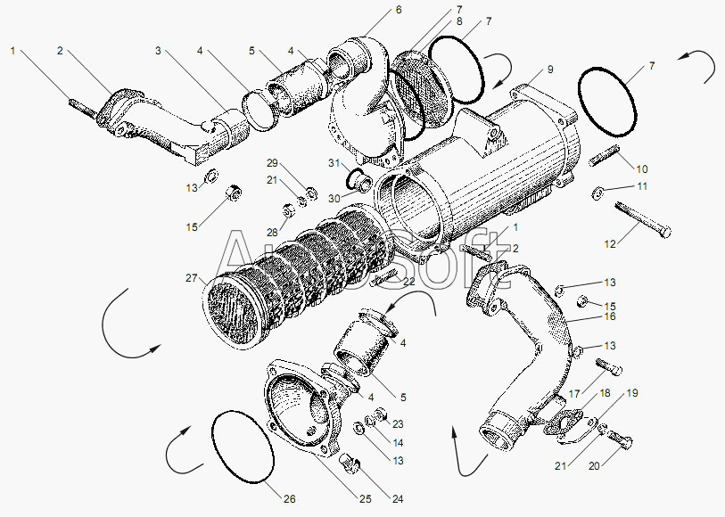 ЯМЗ | ЯМЗ-65652 (65654) (Евро 4) (2015) | 7601.1013710-12 | Крышка теплообменника задняя | 7601.1013600-03 Теплообменник жидкостно-масляный в сборе |