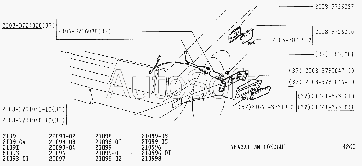 ВАЗ | ВАЗ-2109 (1991) | 21061-3731912 | Лампа А12-1,2 | Указатели боковые | |