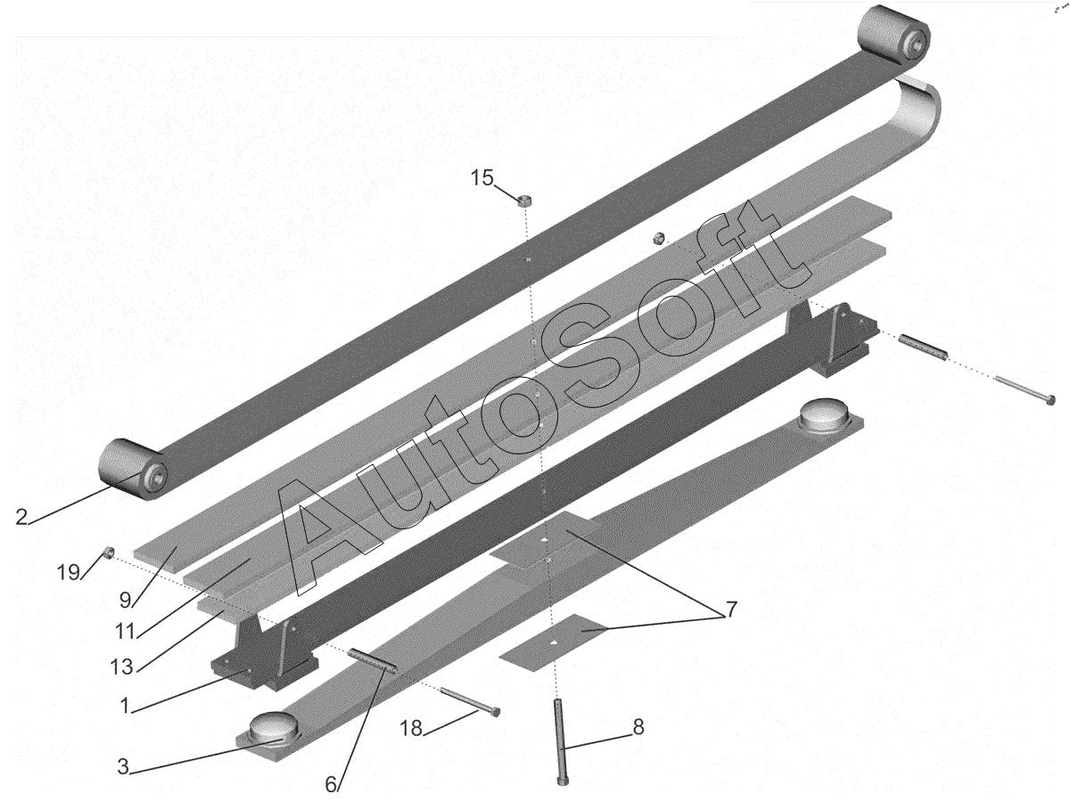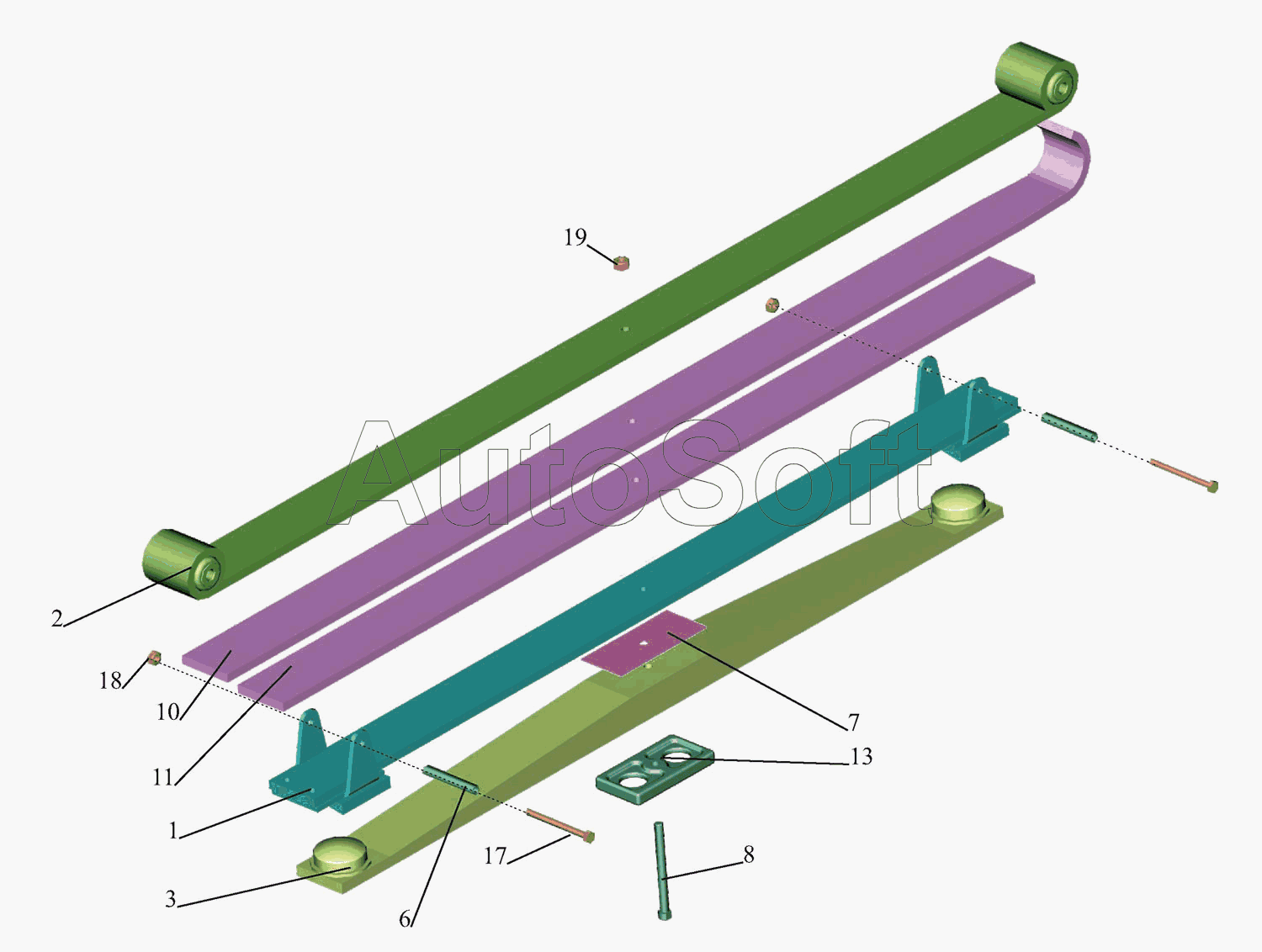 МАЗ | МАЗ-437043 (Зубренок) (2011) | 4370-2912055 | Лист с шарниром | Рессора задняя 4370-2912012 |