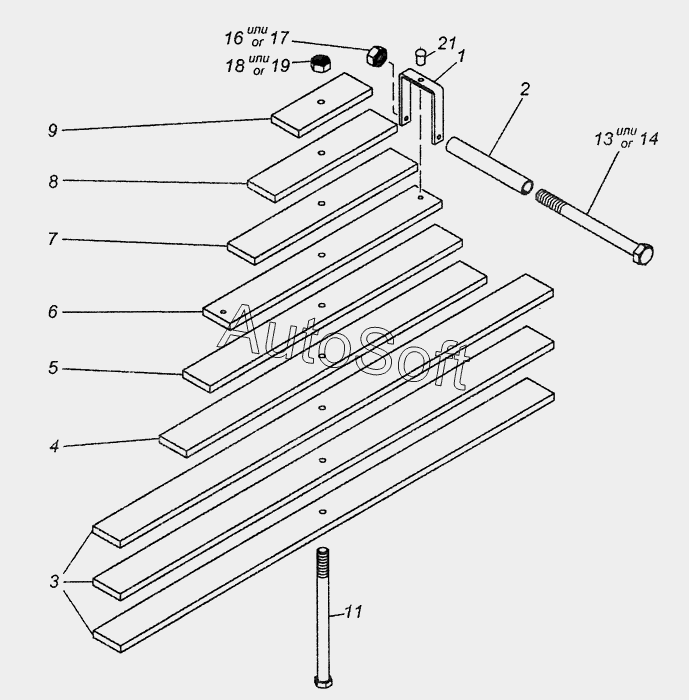 | Стремянка рессоры задней 5511-2912408 (L=420 , гайка М27) гальваника КММЗ | |