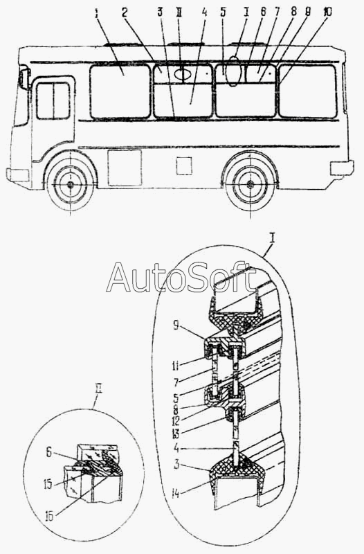 ПАЗ | ПАЗ-3205-110 (2005) | 3205-5413100 | Крышка люка топливного бака | Окна боковые |