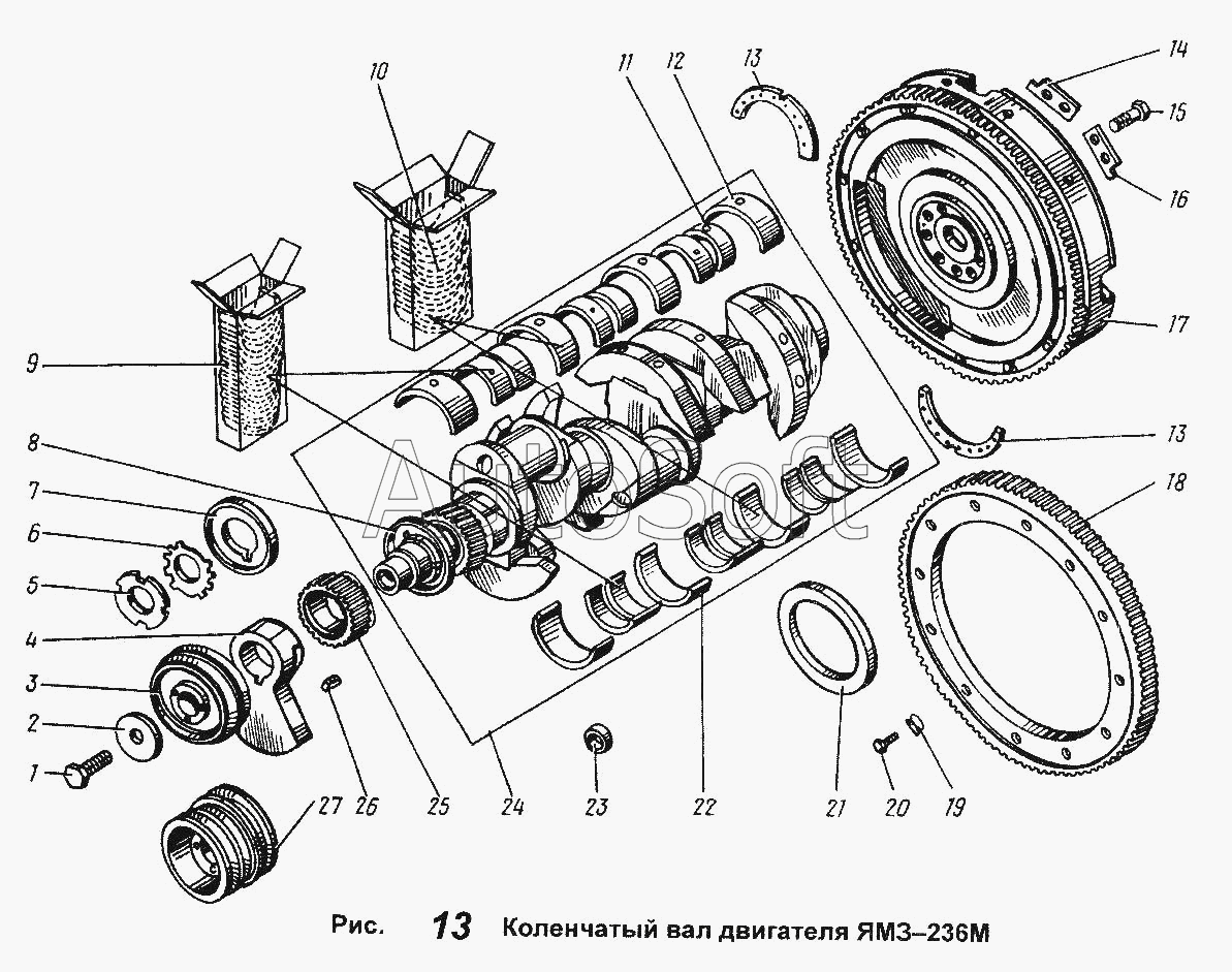 | ЯМЗ | ЯМЗ-236 ДК и ЯМЗ 238 АК (2002) | 238АК-1005115 | Маховик в сборе | Коленчатый вал и маховик двигателей ЯМЗ238АК | |