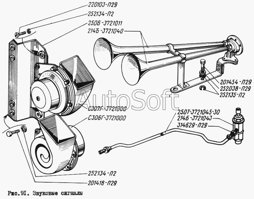 | КрАЗ | КрАЗ-250 | 214Б-3721043 | Выключатель пневматический сигнала ВК-40А | Сигналы звуковые | |