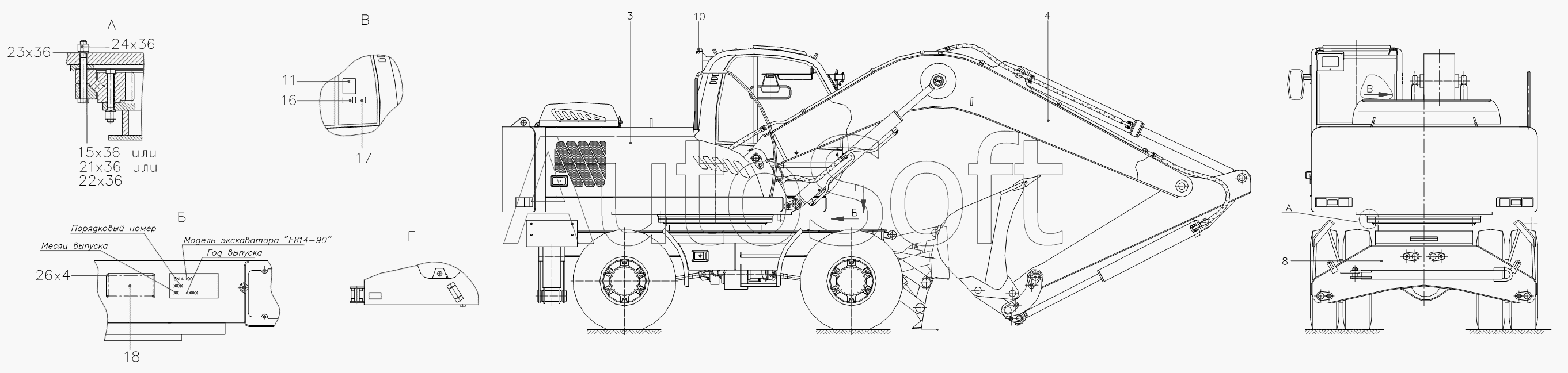 ТВЭКС | ЕК-14-90 (2015) | МГЕ-46В | МГЕ-46В | 314-90-00.00.000 Экскаватор пневмоколесный гидравлический ЕК14-90 |