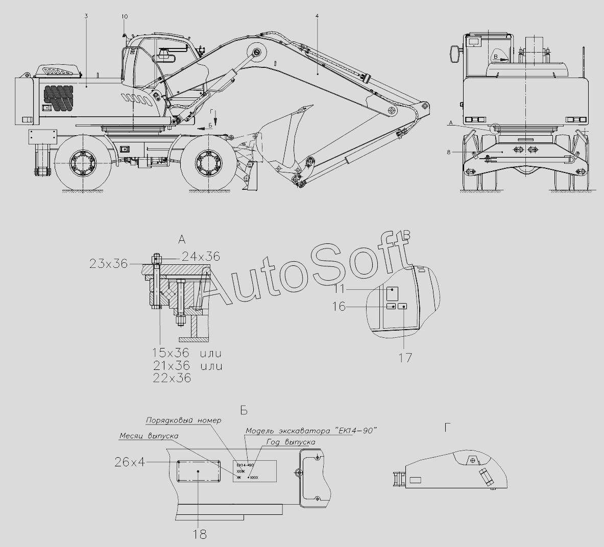 ТВЭКС | ЕК-18-90 (2012) | МГЕ-46В | МГЕ-46В | 318-90-00.00.000 Экскаватор одноковшовый пневмоколесный ЕК18-90 |