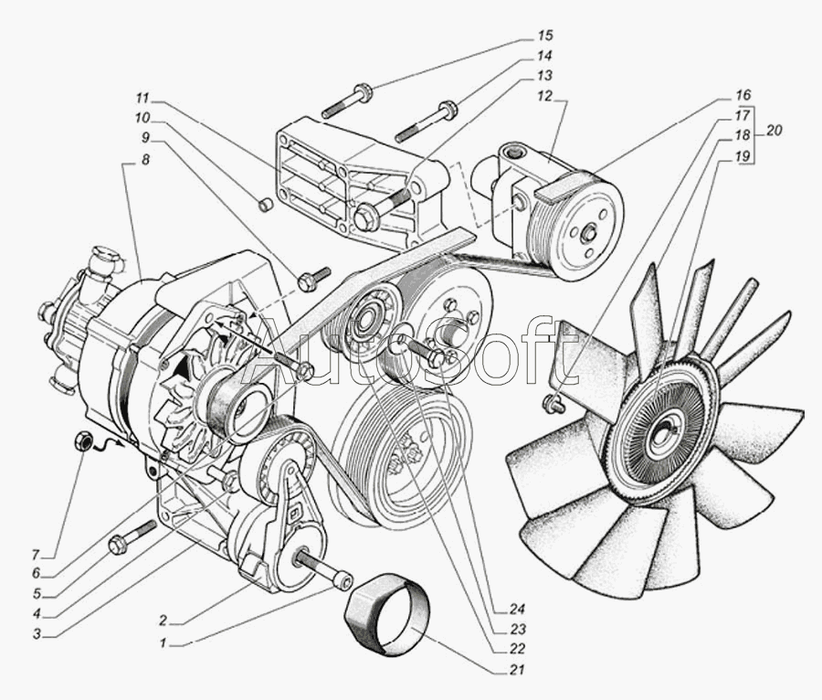 | ГАЗ | ГАЗ-560 (2005) | 560.1045010 | Механизм натяжения ремня | Генератор с вакуумным насосом, насос рулевого гидроусилителя, привод навесных агрегатов |