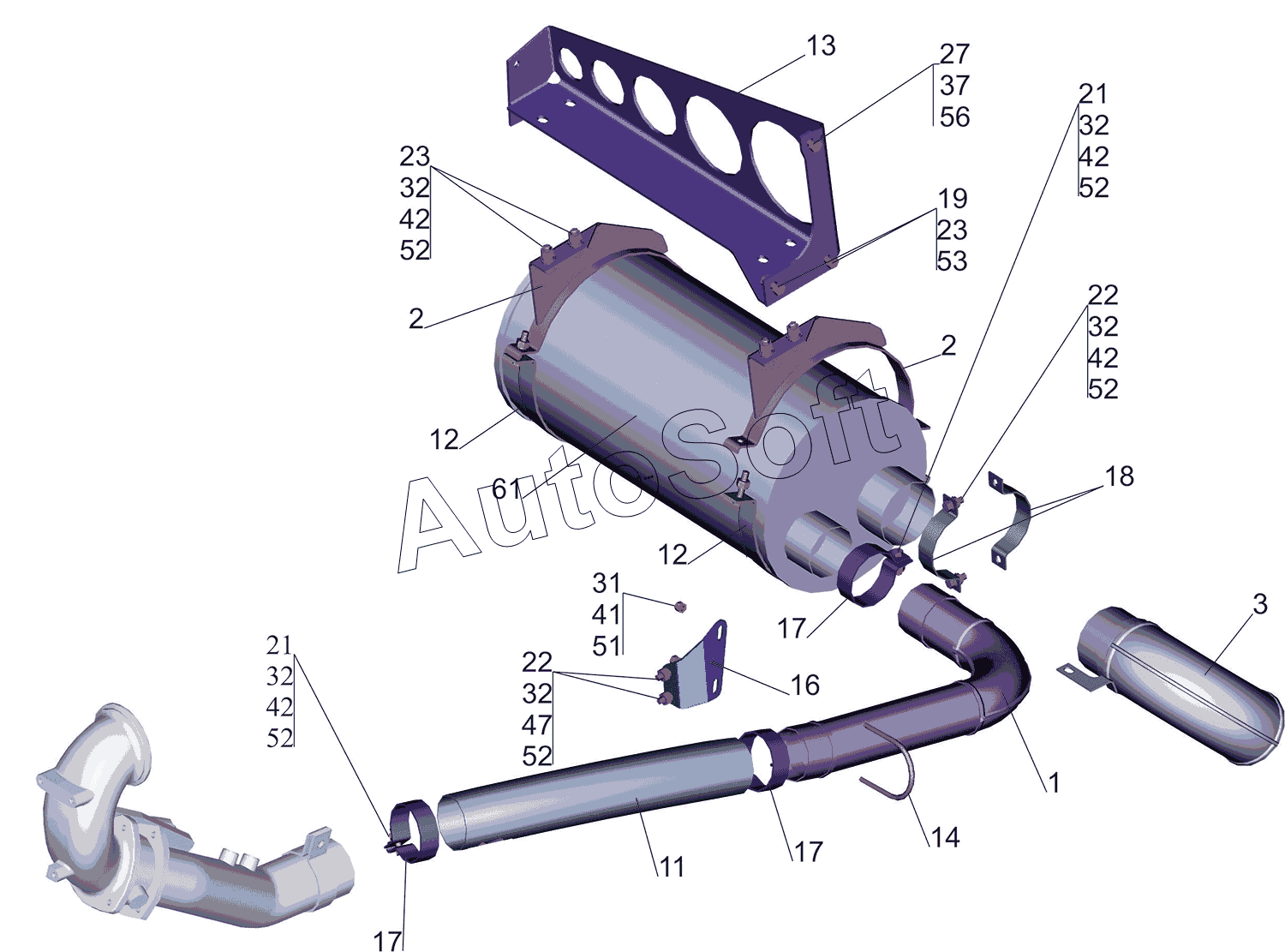 Глушитель нижний выхлоп овальный (шаровое соед.) | |