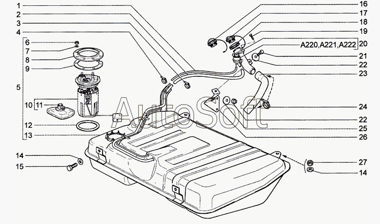 | ВАЗ | Chevrolet Niva (2020) | 21236-1139009-15 | Электробензонасос с дут в сборе | Бак топливный в сборе (деталировка)(с 01.2006) | |