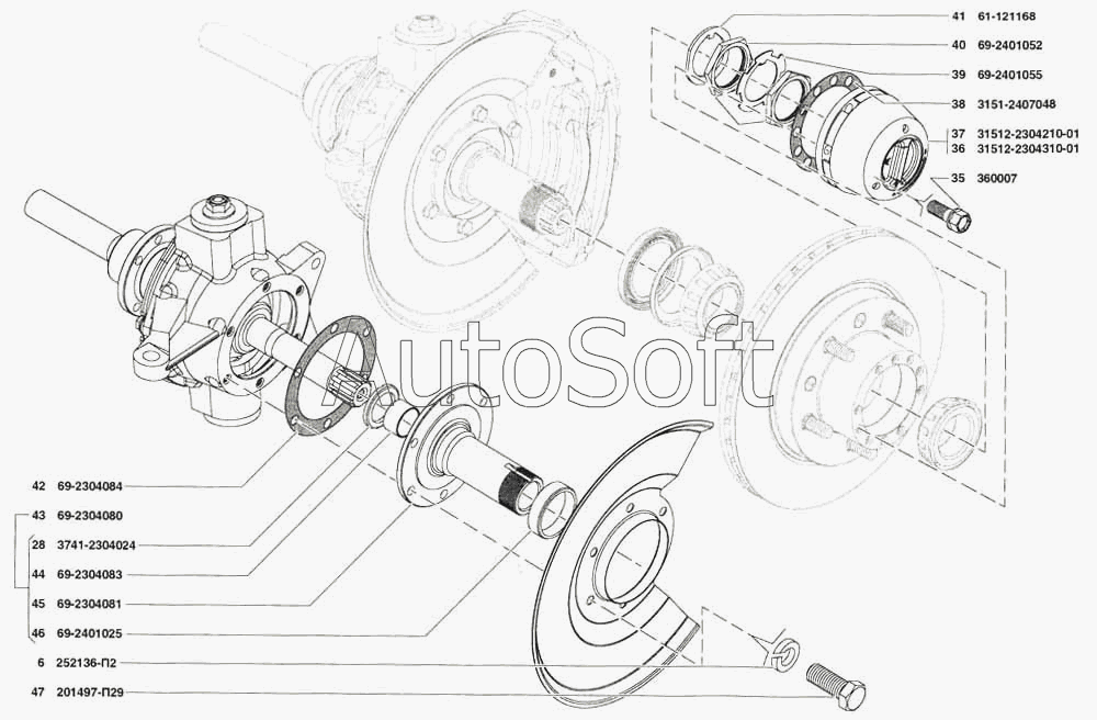 | УАЗ | УАЗ-31519 (2005) | 31512-2304310-01 | Муфта отключения передних колес | Кулаки поворотные |
