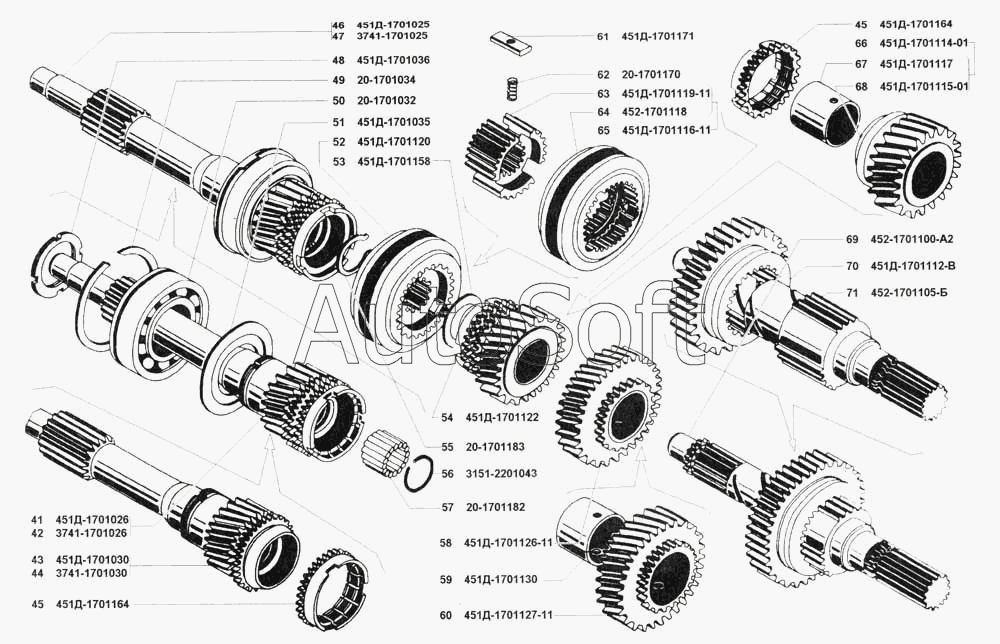 | УАЗ | УАЗ-3151 (1993) | 451Д-1701120 | Муфта скользящая со ступицей, пружинами, сухарями и шариками в сборе | Коробка передач | |