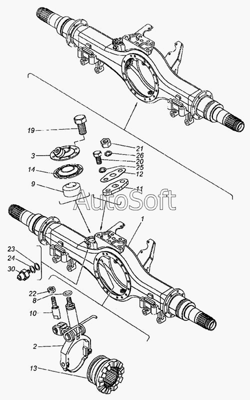 Картер заднего моста с механизмом блокировки в сборе Э4308-2401007