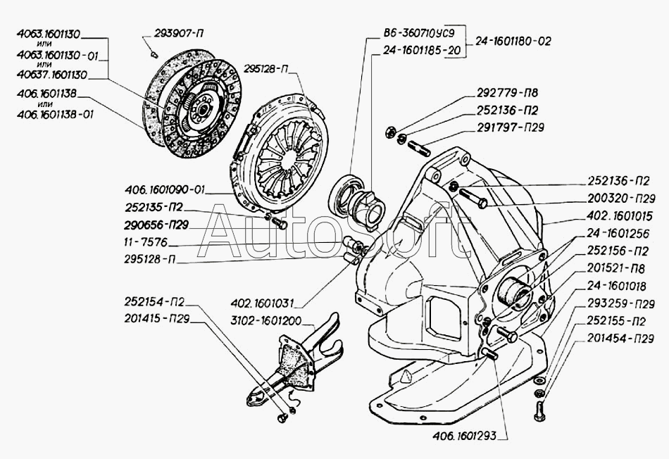 ГАЗ | ГАЗ-3302 (2004) (2004) | 24-1601180-02 | Муфта выключения сцепления с подшипником | Сцепление двигателей ЗМЗ-406 |
