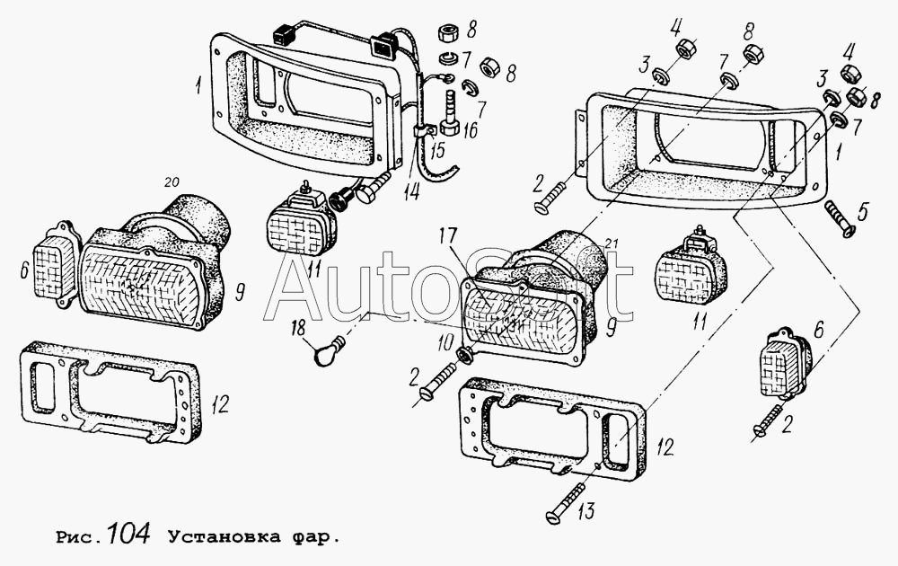 МАЗ | МАЗ-437040 (Зубренок) (2002) | 64221-3711322 | Накладка декоративная | Установка головных фар | |