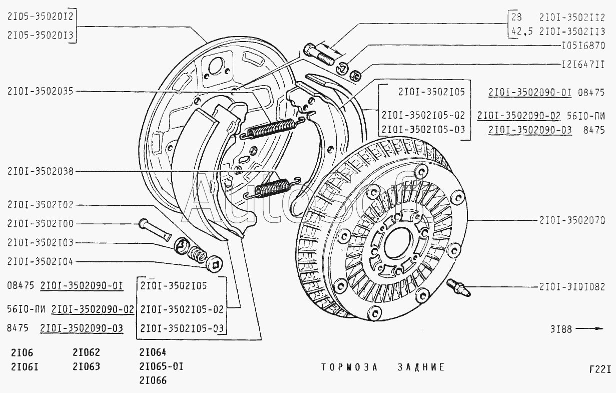 ВАЗ | ВАЗ-2109 (1991) | 2108-3502105-01 | Накладка | Тормоза задние | |
