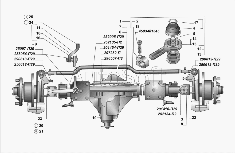 Правый наконечник (правая резьба, М18х15 мм, D=53 мм, L=124 мм, H=87 мм, с шарниром [2217/3302-3414029] в сборе) поперечной рулевой тяги (для ГАЗ «Газель», «Соболь»), боковой тяги рулевой трапеции (для ГАЗ «Соболь» — внутренний наконечник), продольной рулевой тяги (для ГАЗ-3307,-33081,-33086,-33088,-3309,-33096,-33098)