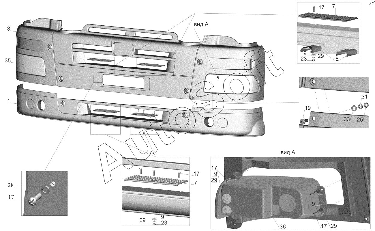 | МАЗ | МАЗ-5550V3 (V5) (2011) | 5550-2803065 | Накладка | Установка переднего бампера 5340V4-2800003-030 | |