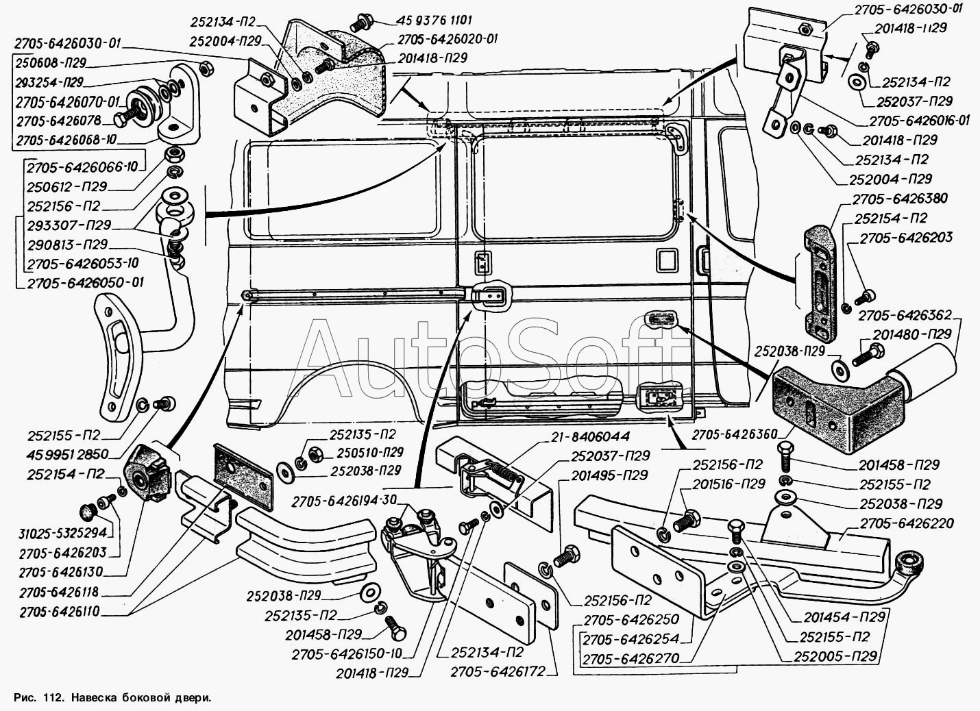 ГАЗ | ГАЗ-2705 (дв. ЗМЗ-402) (2006) | 2705-6426220 | Направляющая нижняя с ограничителем | Навеска боковой двери | |
