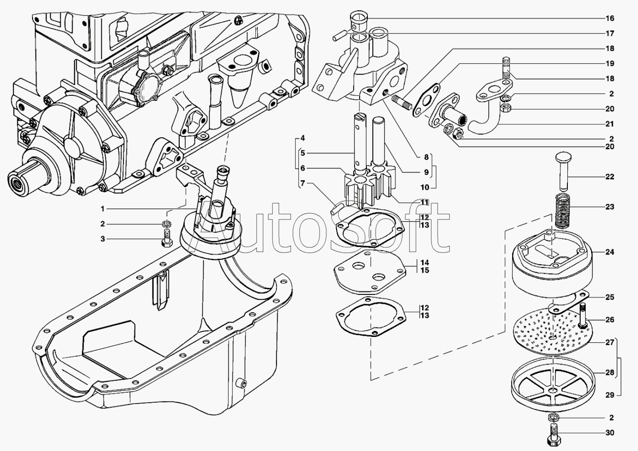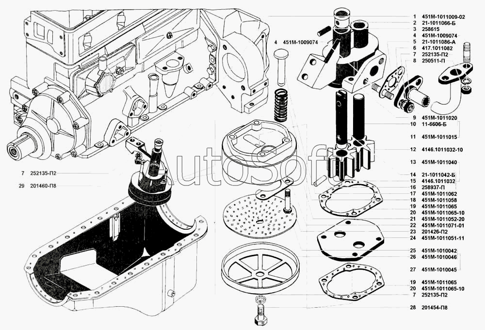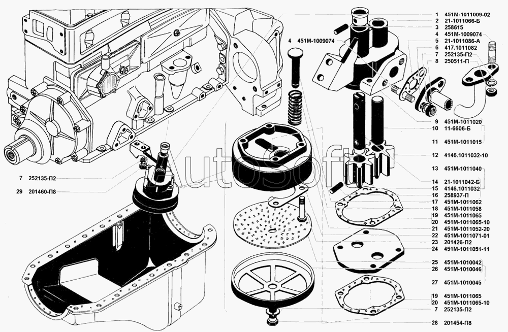 | УМЗ | УМЗ-421 (2002) | 451М-1011009-02 | Насос масляный с маслоприемником в сборе | Маслоприемник и масляный насос |
