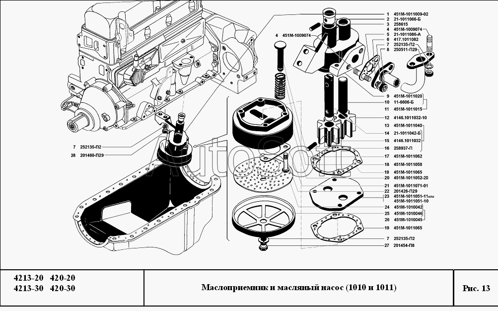 | УМЗ | УМЗ-4213, 420 (2007) | 451М-1011009-02 | Насос масляный с маслоприемником в сборе | Маслоприемник и масляный насос |