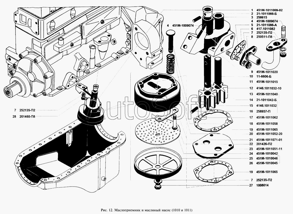 | УМЗ | УМЗ-А274 (2012) | 451М-1011009-02 | Насос масляный с маслоприемником в сборе | Маслоприемник и масляный насос |