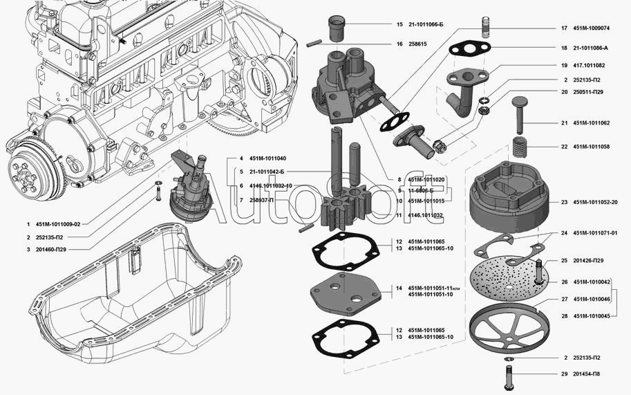 | УМЗ | УМЗ-4213 (Евро 3) (2008) | 451М-1011009-02 | Насос масляный с маслоприемником в сборе | Маслоприемник и масляный насос |