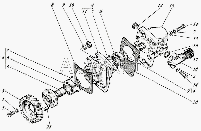 | МАЗ | МАЗ-74131 (1996) | 0000-1802077 | Насос НШ10У-3-Л | Раздаточная коробка |
