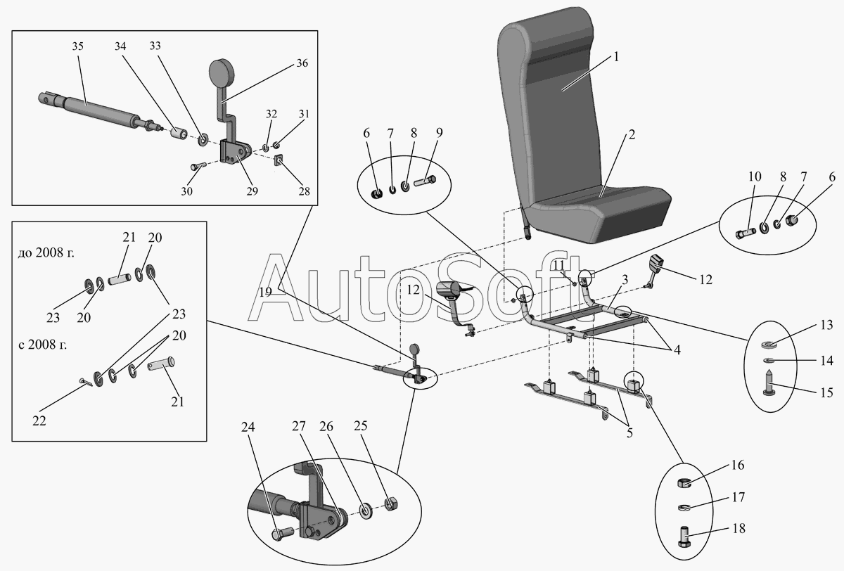 | АМАЗ | МАЗ-256 (вариант) (2006) | GP-10-3-32M-550-40 | Пружина газовая | Сиденье одноместное |