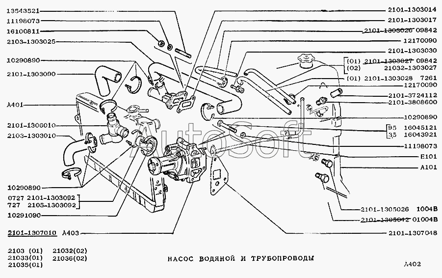 Насос водяной 21-1307010-52 производства RSTA (РФ), Код для заказа: 59739