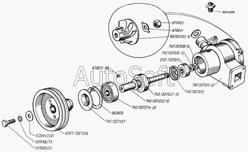 Насос водяной 740-1307010-11 производства RSTA (РФ), Код для заказа: 00-ГР022515