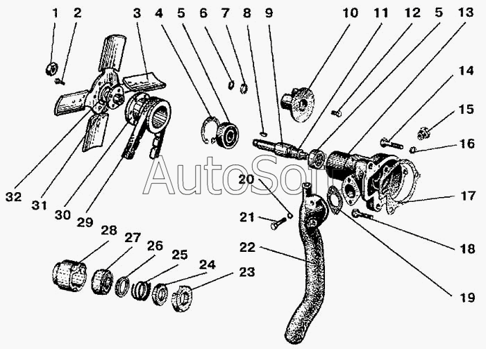 Водяной насос приводится во вращение от шкива коленчатого вала дизеля при помощи клиновидного ремня. Водяной насос дизеля Д-245 приводится во вращение двумя ремнями.