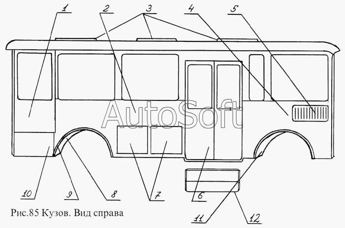 | ПАЗ | ПАЗ-32053 (2004) | 3205-5402195-01 | Облицовка арки колеса | Боковина кузова левая с остеклением |
