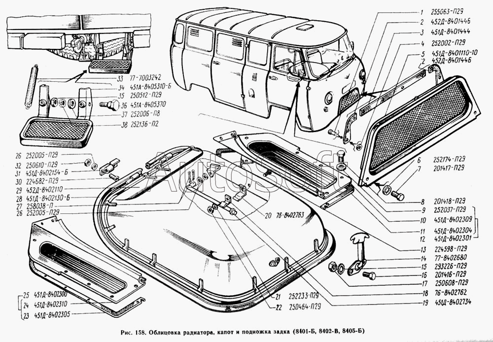 | УАЗ | УАЗ-3741 | 451Д-8401110-10 | Облицовка радиатора | Облицовка радиатора, капот, подножка задка |