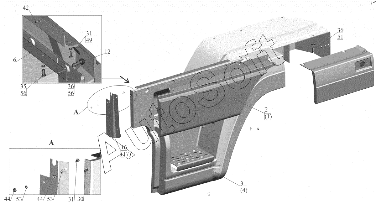 | МАЗ | МАЗ-4371P2-0000421-000 (2013) | 4371-8405022 | Подножка верхняя | Оперение 4371-8400010-010 |