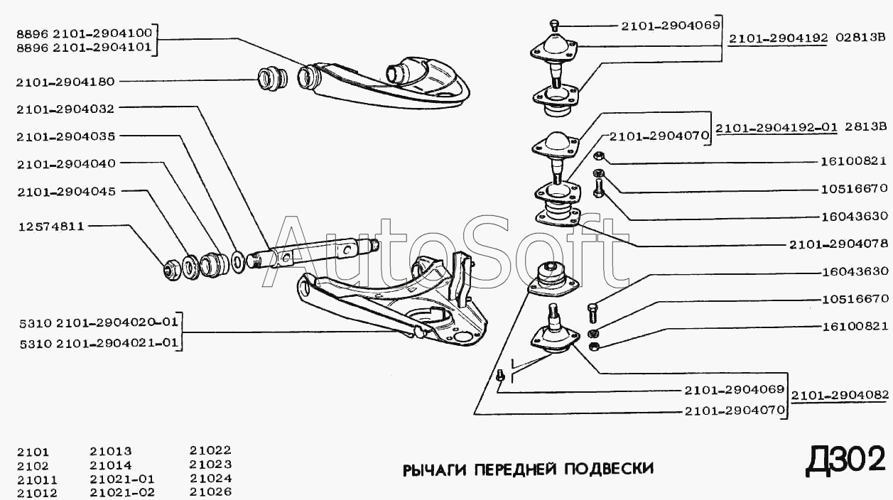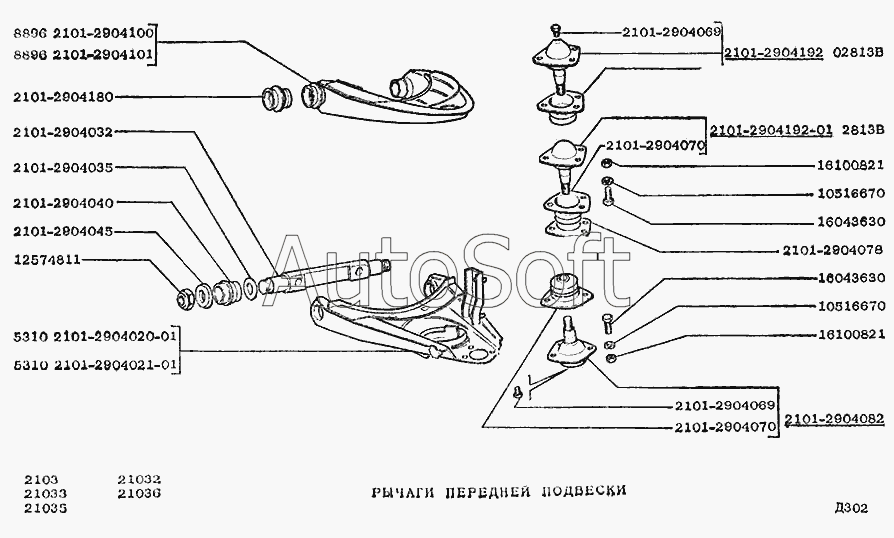 | ВАЗ | ВАЗ-2102 (1982) | 2101-2904192 | Палец шаровой верхний с чехлом | Рычаги передней подвески |