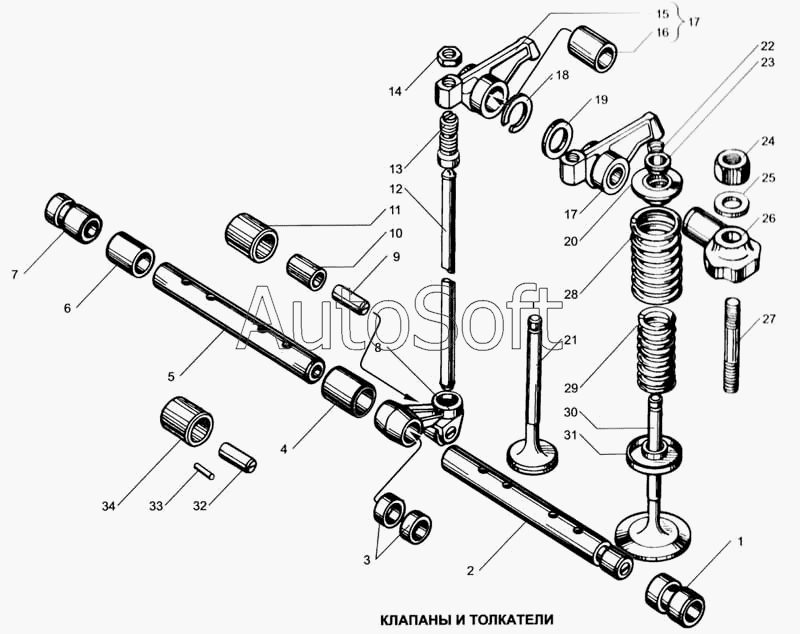 | МАЗ | МАЗ-503А | 236-1007091-Б2 | Ось коромысла в сборе | Клапаны и толкатели | |
